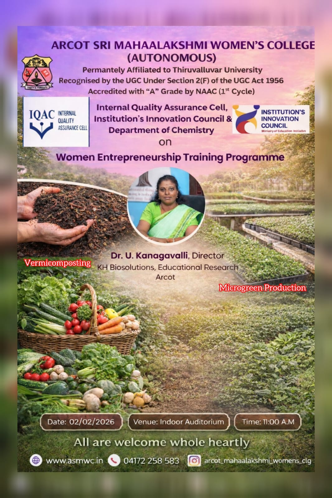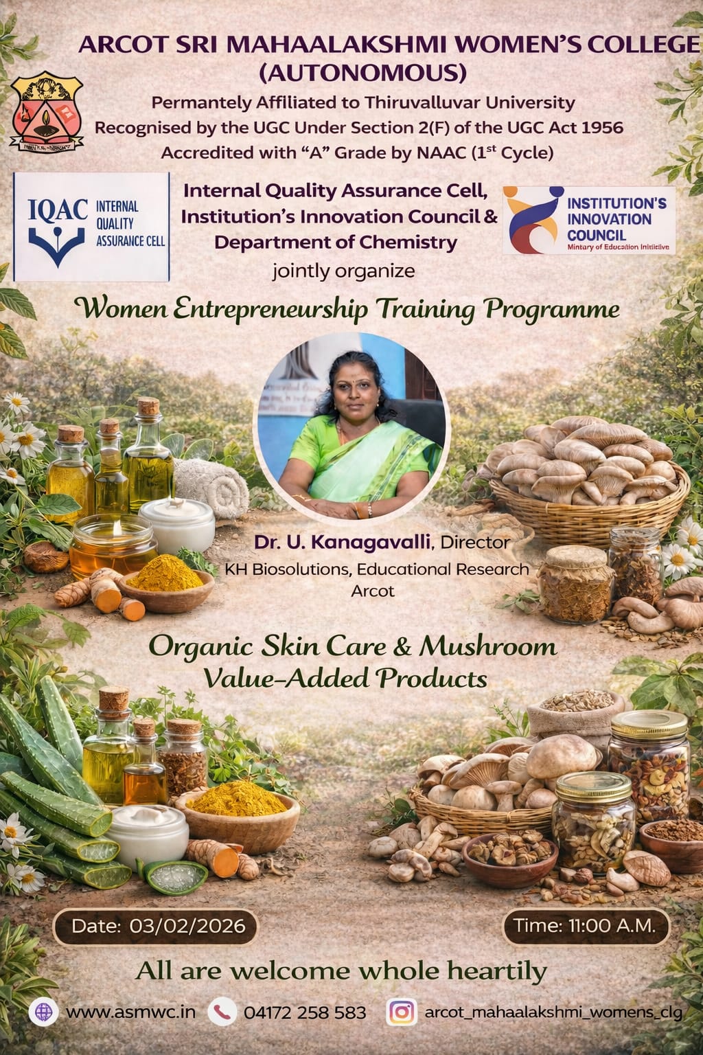 ASMWC" class="d-block" style="width: 100%; height: auto;" />With Innumerable and spontaneous showers of the blessings of the Almighty, Arcot Sri Mahaalakshmi Women’s College was started in the year 1999 to fulfill the long demand of people in and around Arcot for the upliftment of underprivileged girls and to propagate women’s education...