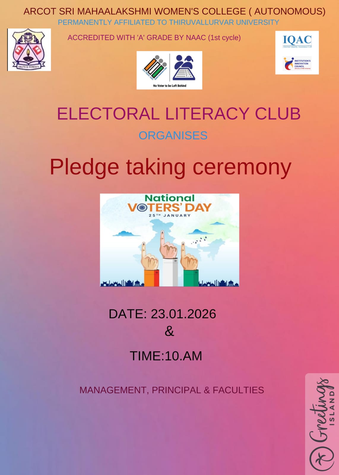 To provide high-quality education, identifying hidden talent of the women students thereby giving them the chance to reach their goal, more independent and empowered.